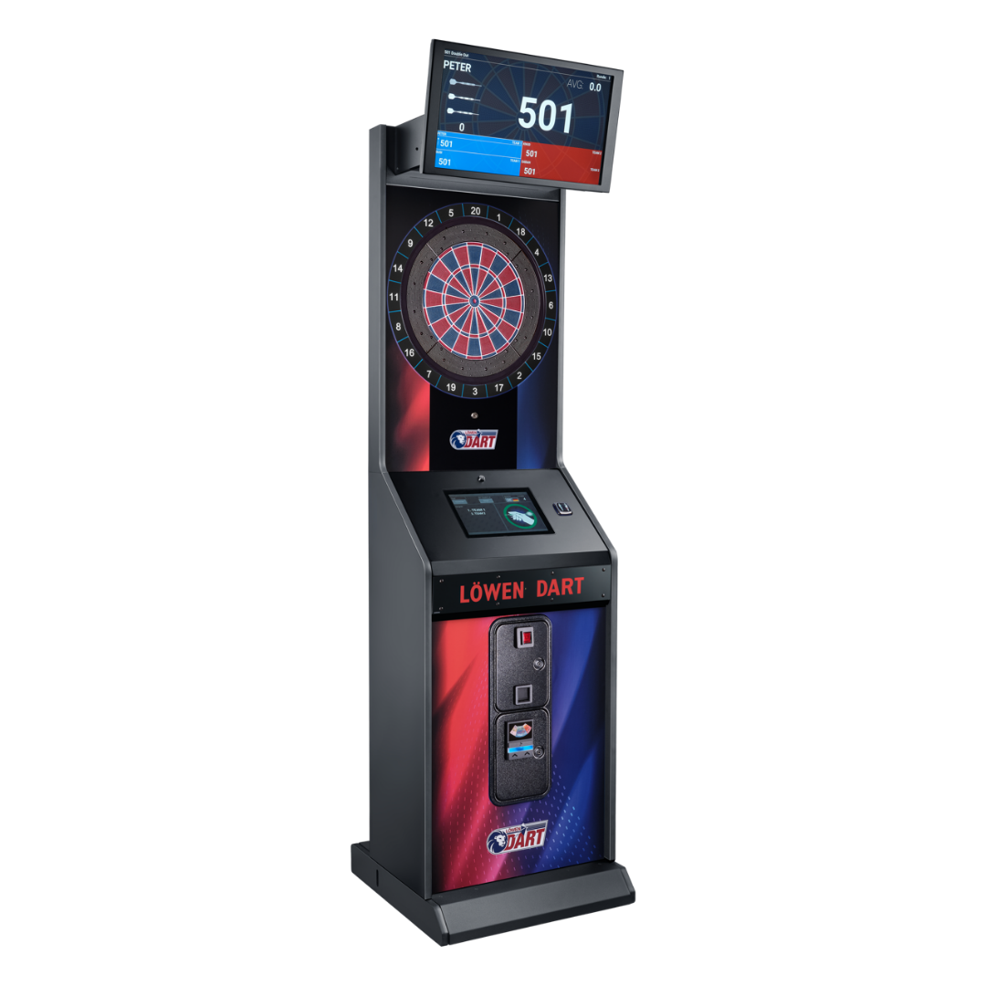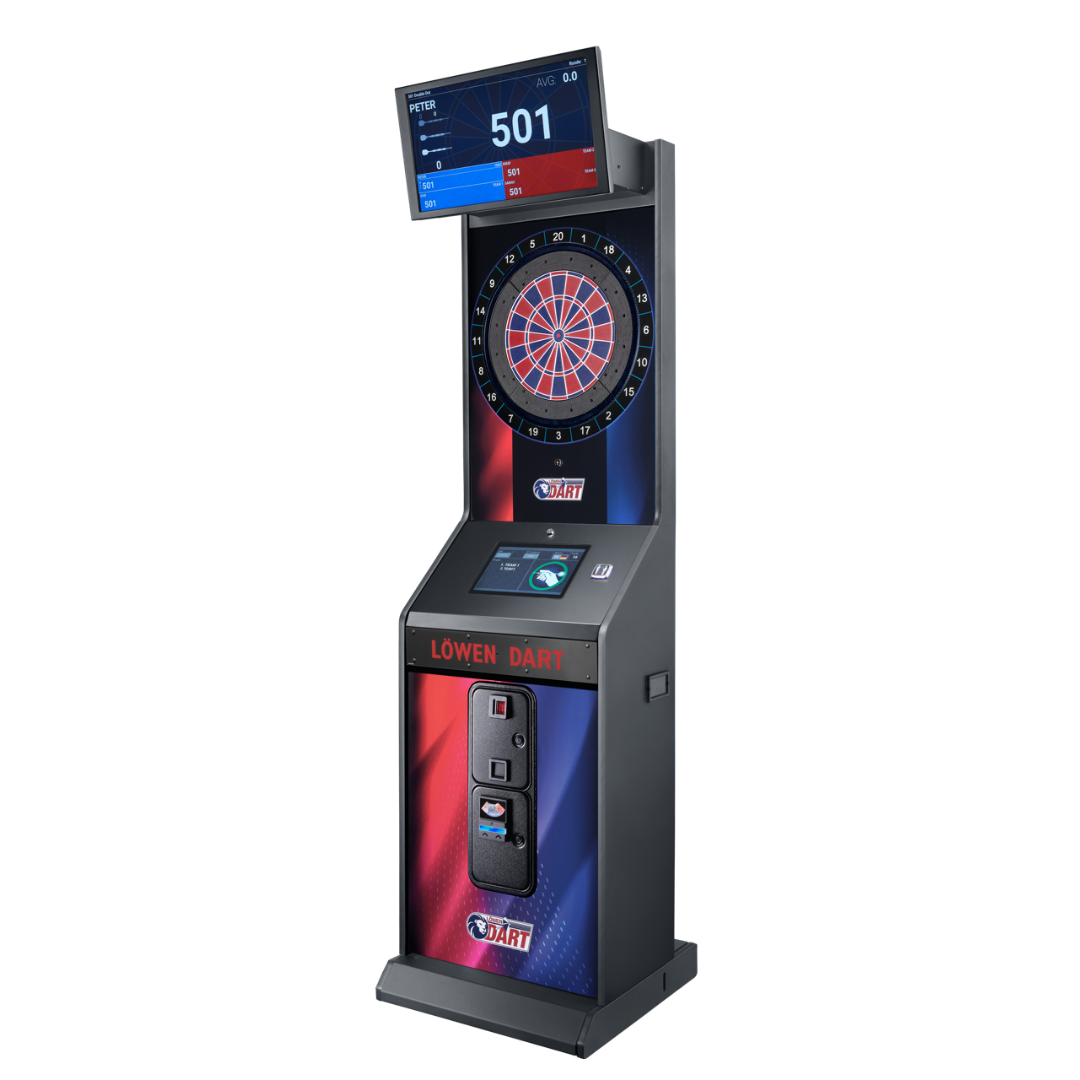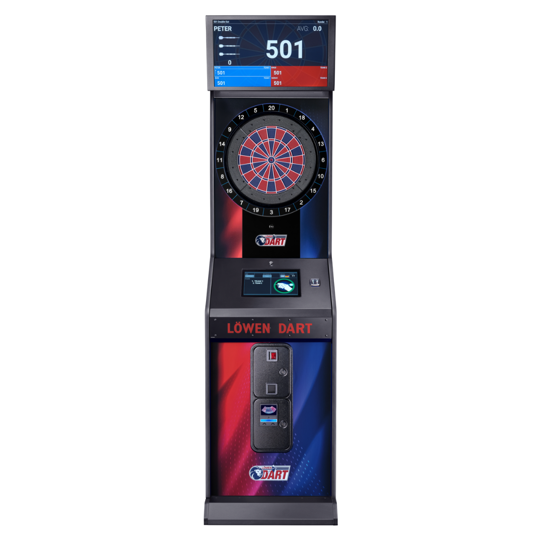 Der LÖWEN DART HB10 ist die innovative Weiterentwicklung der bewährten LÖWEN Dartsysteme – und bringt den elektronischen Dartsport auf ein völlig neues Niveau. Mit zahlreichen Spielmodi, einem hochauflösenden 23,8-Zoll-Monitor, einem intuitiven 12,1-Zoll-Touchpad sowie einem modernen Design in Blau oder Rot-Blau, überzeugt der HB10 optisch wie technisch auf ganzer Linie.